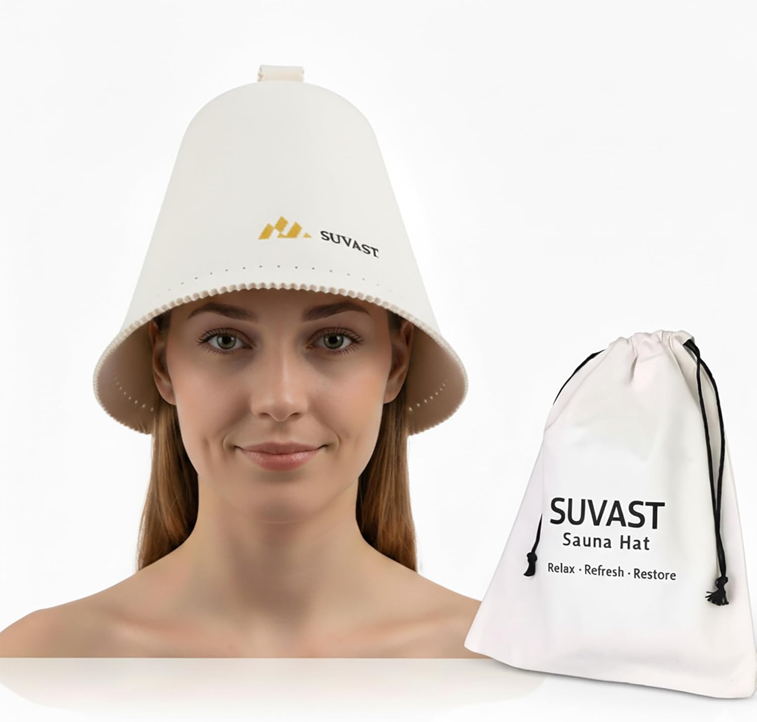 Merino Wool Sauna Hat for Women & Men, Seamless Soft Felt Sauna Cap, 100% Fine Merino Wool, Lightweight Breathable Nordic Design, Protects Head & Hair from Heat, Gift Bag Included White