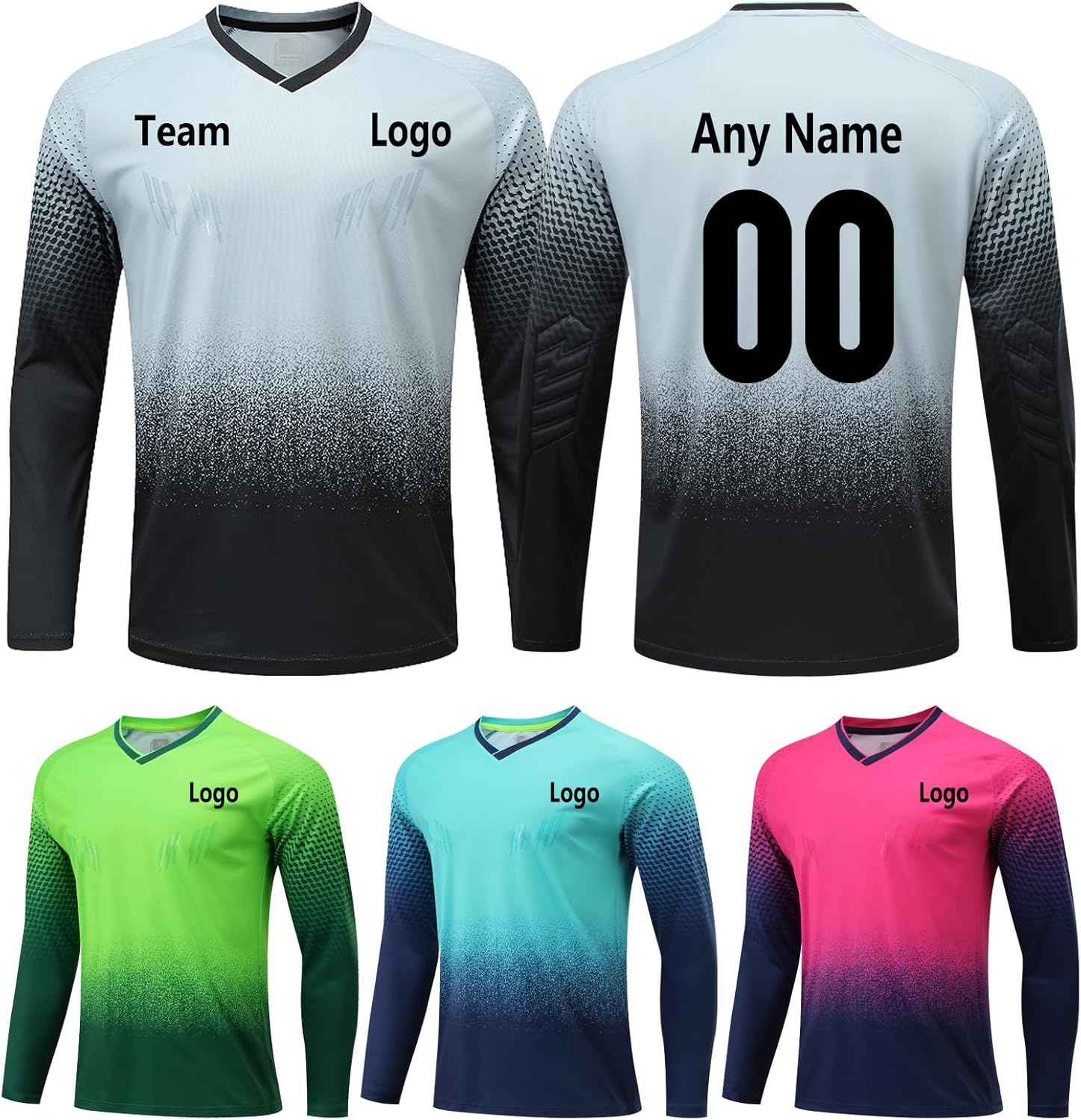 Customized Soccer Jerseys Goalie Shirt, Padded Goalkeeper Jersey, Adult & Kids Sizes, Long Sleeve Football Shirt
