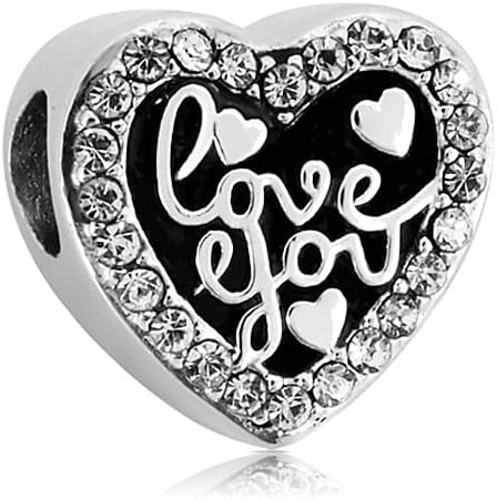 Love You Heart Charm Compatible with Pandora Charms Bracelets for Women Family Birthday Valentine's Day Birthstones Cubic Zirconia