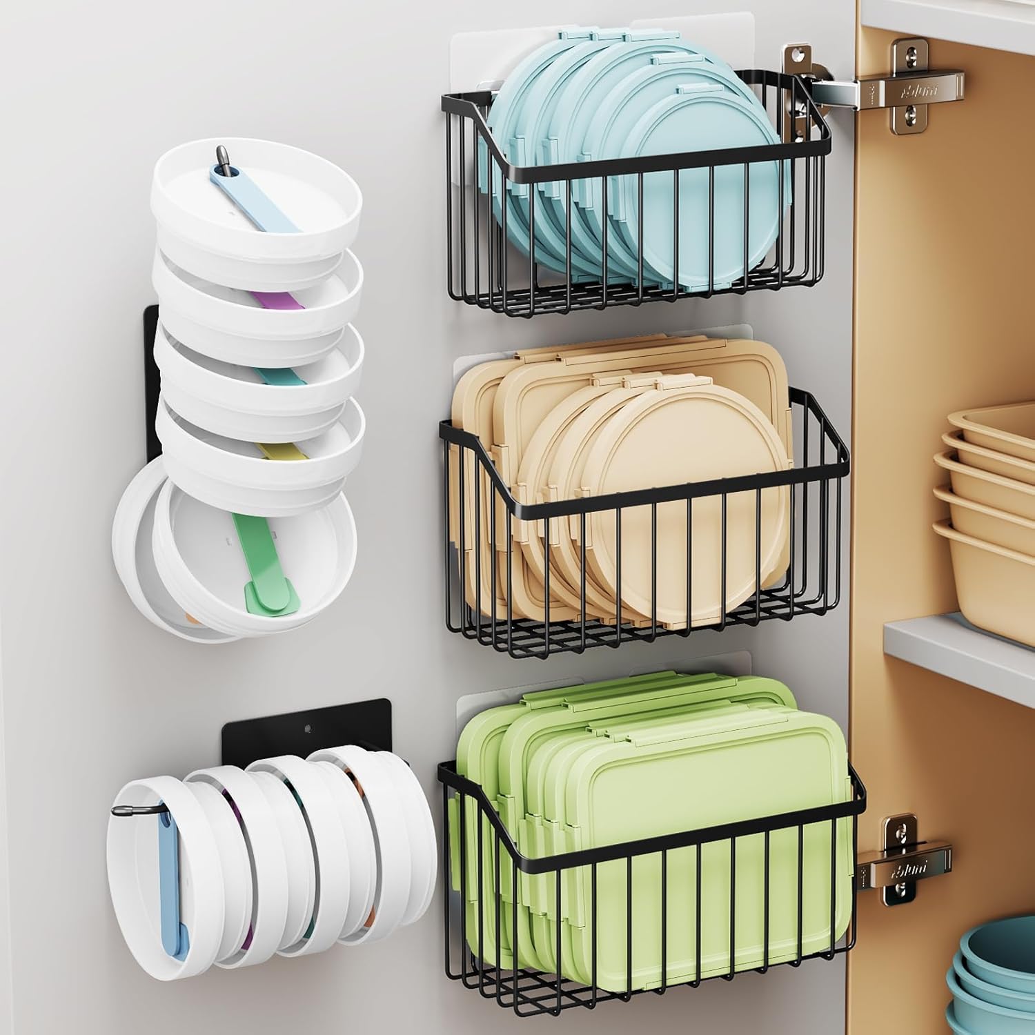 - Multi-Purpose Storage Solution: Ideal for kitchen or bathroom use—organize food storage container lids, Mason jar lids,canning lids, Tupperware and tumbler lids (fits Stanley, Yeti, etc.) or hold shampoo, face wash, and toilet paper. Also suitable for RVs, under sinks, or behind cabinet doors.
