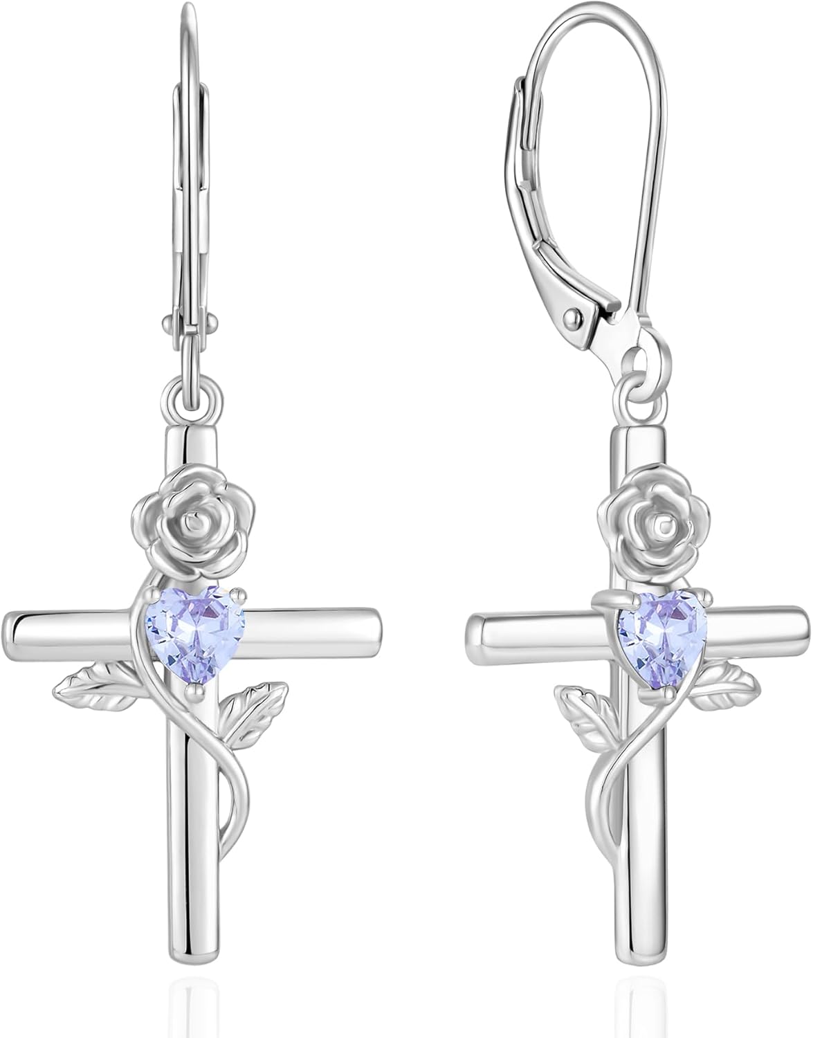 Sterling Silver Cross Earrings Rose Flower Dangle Earring Faith Religious Birthstone Jewelry for Women