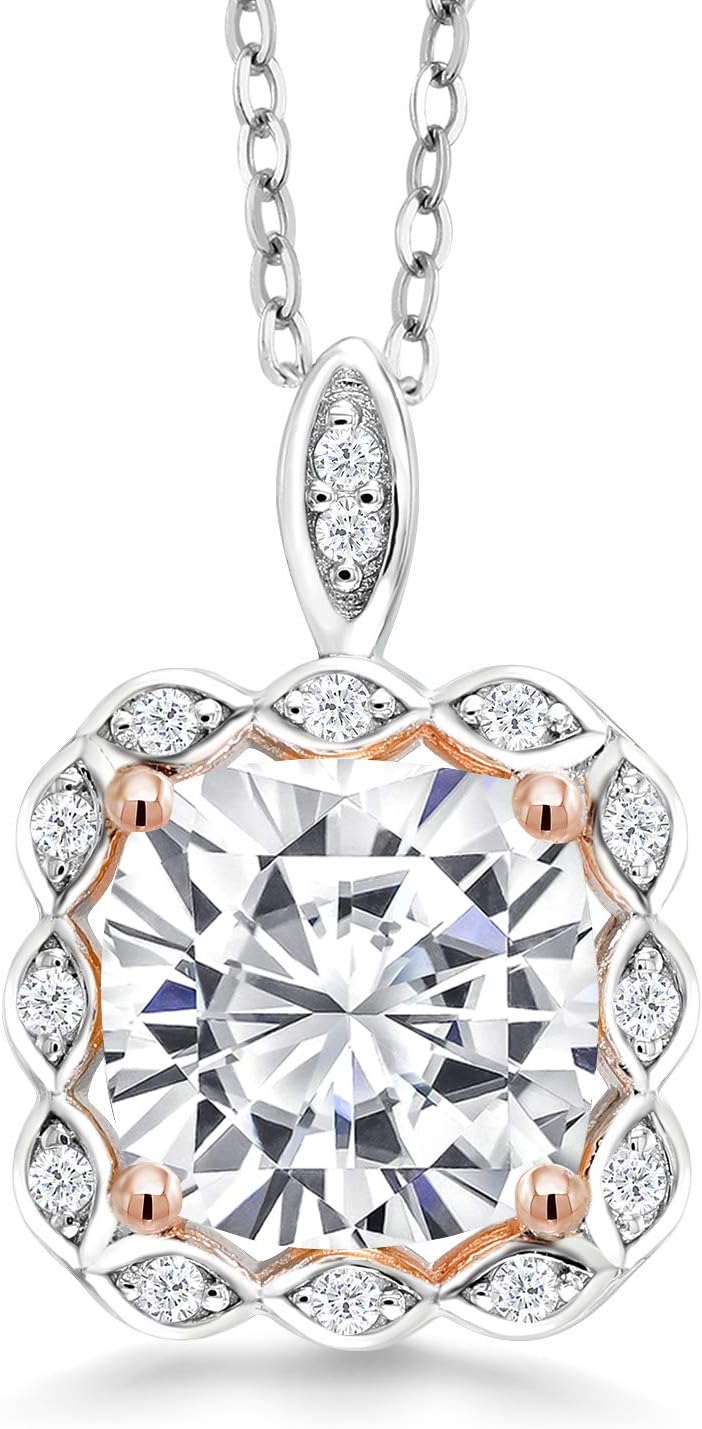 Gem Stone King 1.87 Cttw White Moissanite Halo Pendant Necklace for Women | 925 Sterling Silver | Cushion 8MM | With 18 Inch Silver Chain