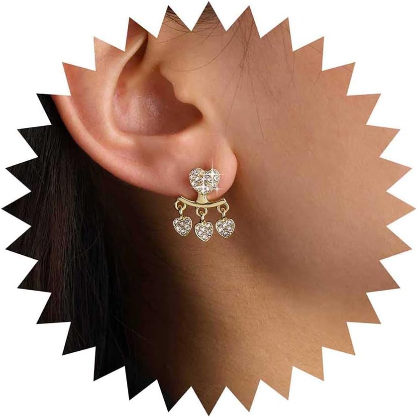 Vintage Heart Ear Jacket Earrings Crystal Heart Earrings Gold Cz Hearts Stud Earring Rhinestone Hearts Dangle Earring Jewelry for Women