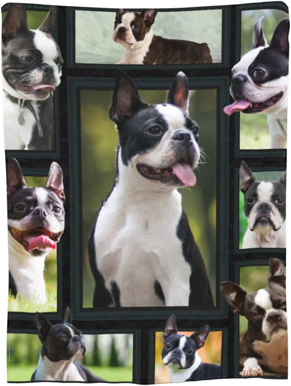 Cute Boston Terrier Dog Black Lovely Dog Printed Ultra-Soft Throw Blanket Home Decorative Blanket for Living Room Bed Sofa