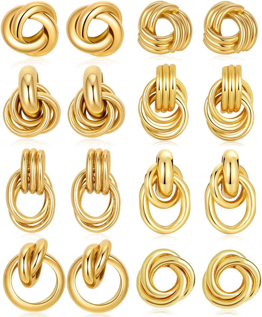 Tornito 8 Pairs Gold Knot Earrings for Women Chunky Statement Long Link Drop Dangle Earrings Geometric Twisted Stud Earrings Jewelry Set