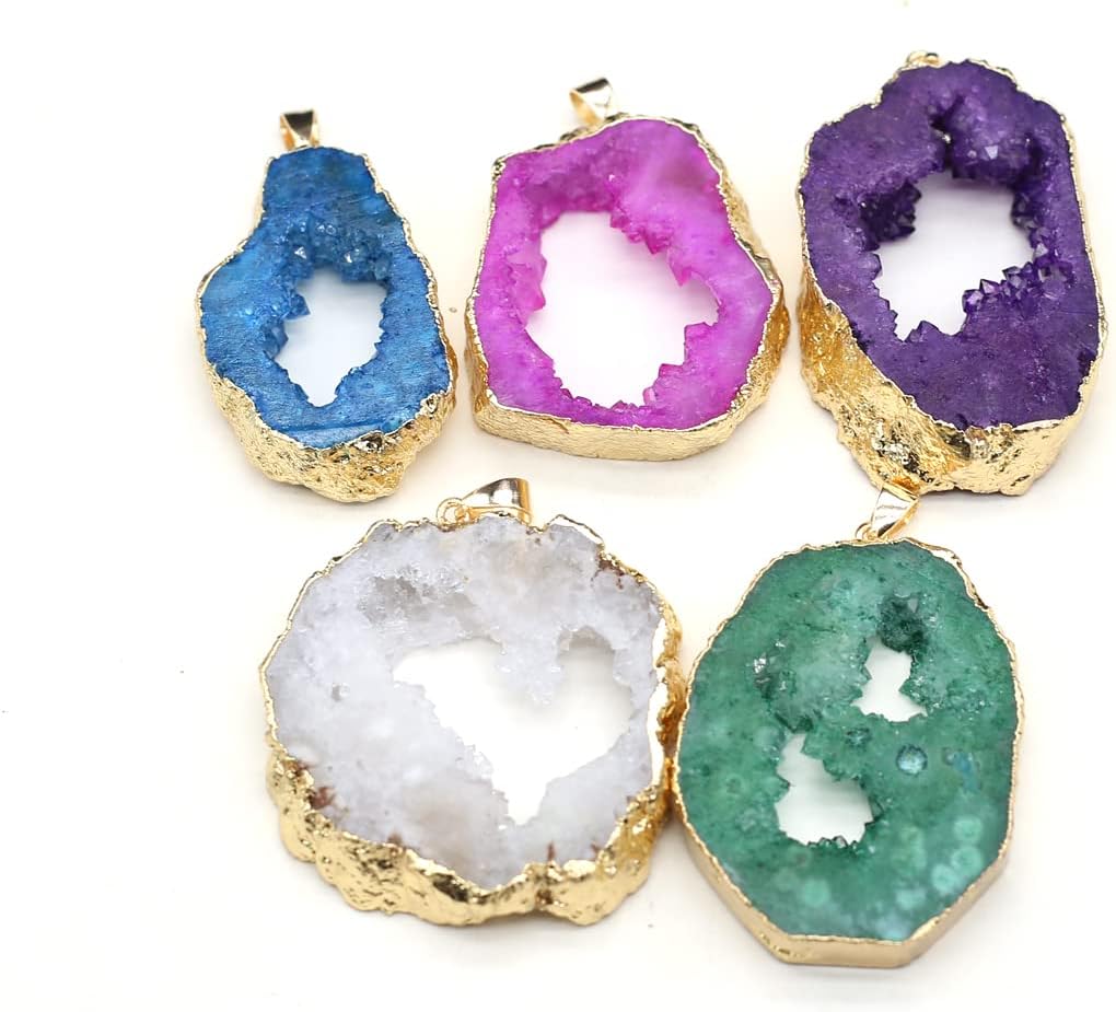 QSLLER Natural Stone Irregular Agates Crystal Bud Gold Plated Edge Sliced Pendant For Jewelry MakingDIY Necklace Accessories Gift Party