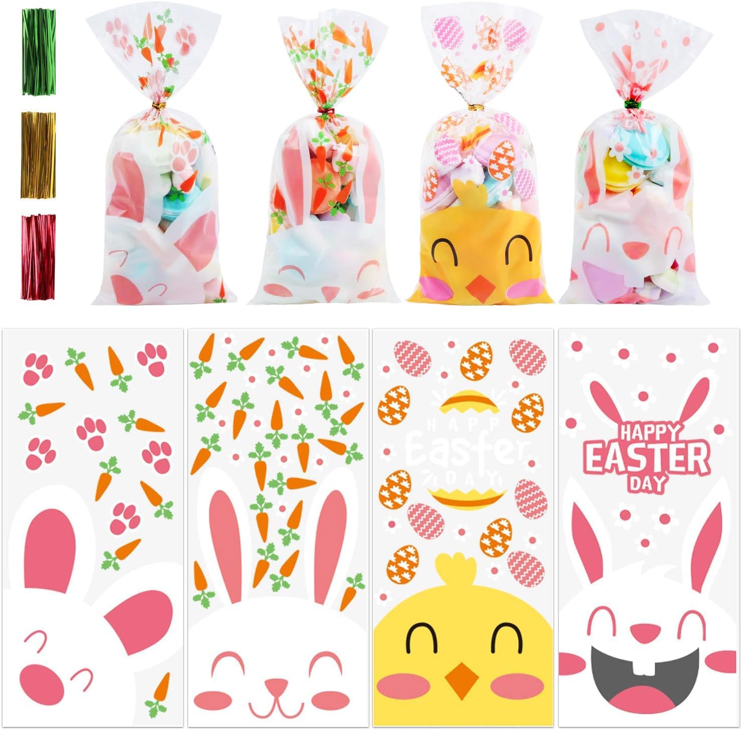 - Value Pack:You will get 120 PCS Easter cellophane bags and 200 pieces twist ties,value combination meet all your need on Easter
