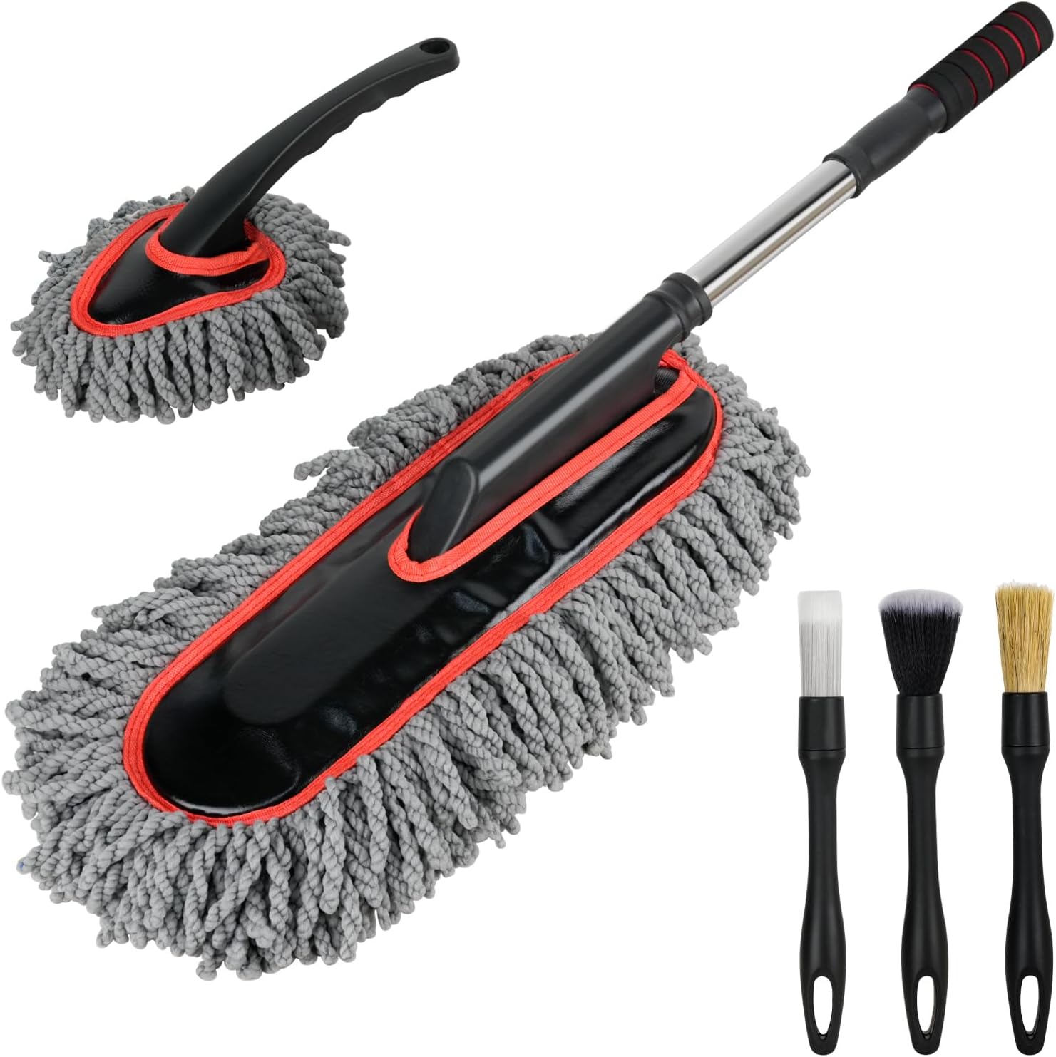 - 【5PCS Multifunctional Car Dust Cleaning Kit】This Car Duster Brush effectively removes dust, pollen, and stains from both the interior and exterior of your car, keeping it clean and polished. It includes: 1x Extendable Car Duster Exterior, 1x Small Microfiber Car Duster, and 3x Car Detailing Brushes.