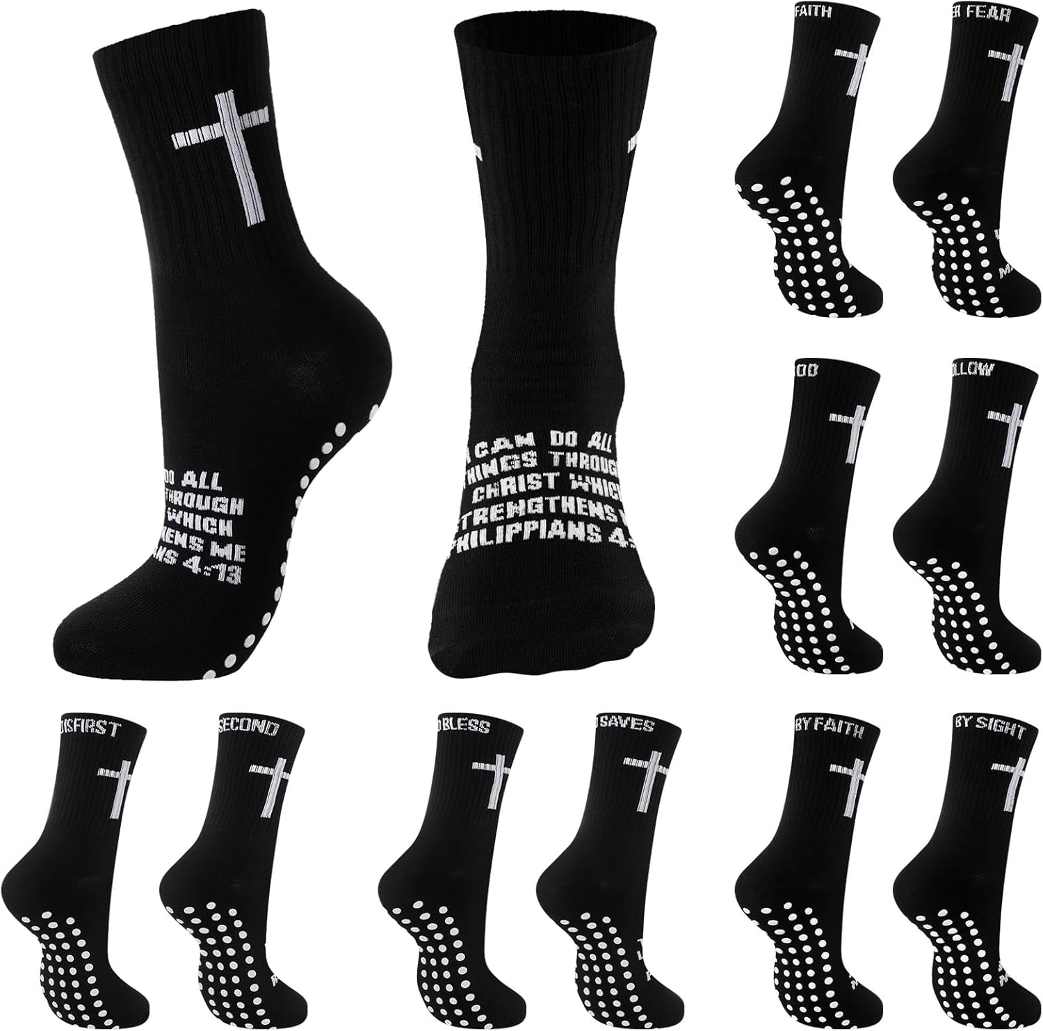 Janmercy 6 Pair Cross Grip Socks Gifts Soccer Sports Socks with Verse Anti Slip for Men Women