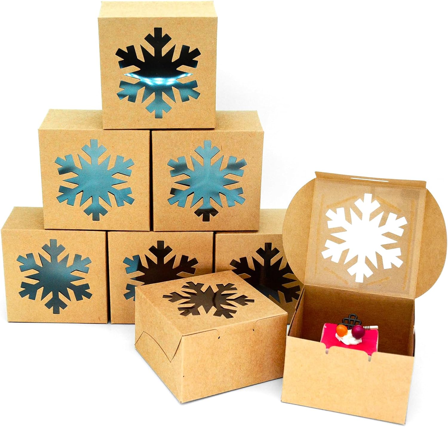 - Unique Snowfake Window Design: Show off your treats by the small pastry box with the window! A perfect kraft paper boxes which adopt attractive snowfake design and is perfect for Christmas holidays party favors