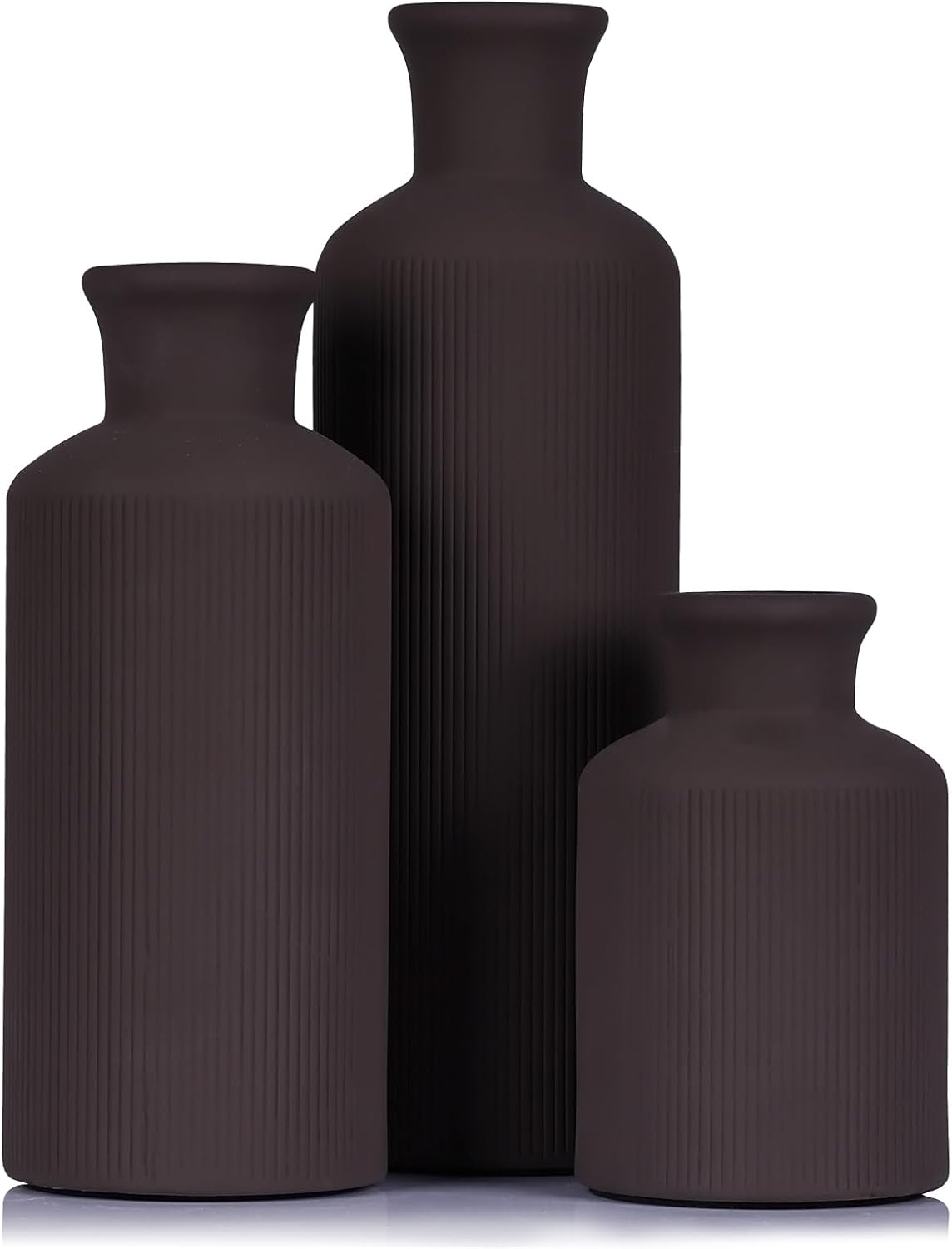 - Piece Ceramic Vase Set: This decorative vase set includes three complementary sizes, designed for versatile styling. Perfect for showcasing dried flowers, pampas grass, faux florals, or as standalone accents.