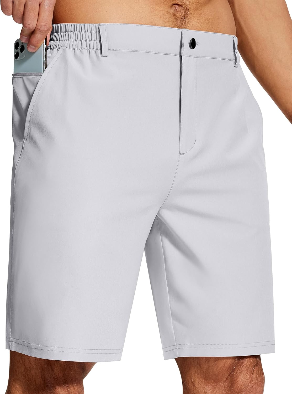 Mens Casual Dress Shorts 9 Inch Elastic Waist Quick Dry Lightweight Khaki for Travel Golf Work with 3 Pockets