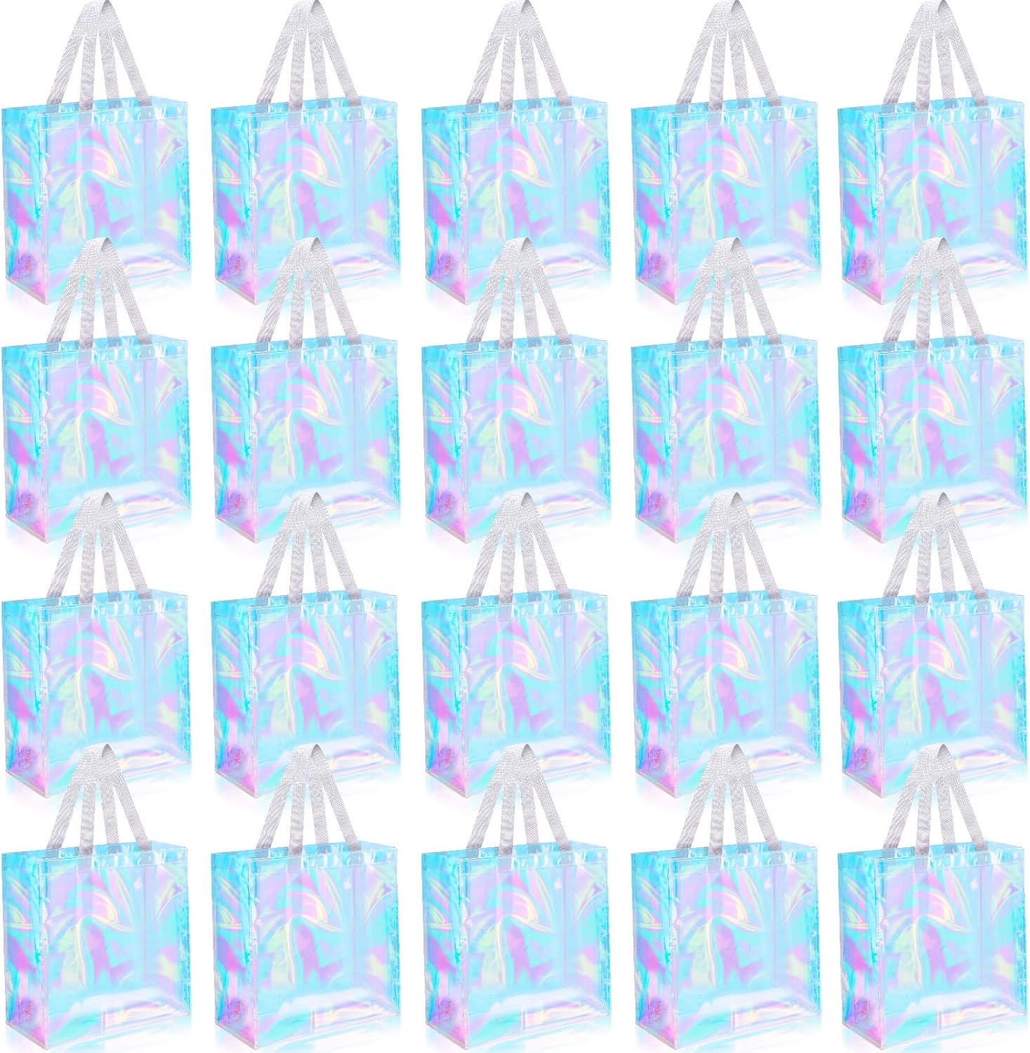 Saintrygo 20 Pack Clear Tote Bags Bulk 12 x 12 x 6 PVC Plastic Tote Bag with Handles for Stadium Work Beach Sports(Laser Color)