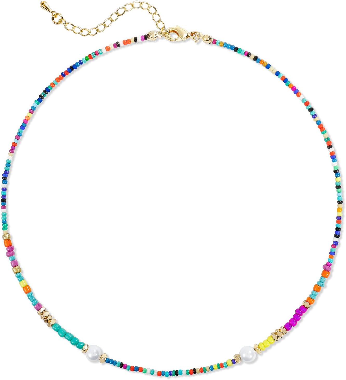 Colorful Beaded Choker Necklace For Women Short Statement Boho Beaded Pearl Adjustable Necklace For Women Summer Beach Jewelry Gift