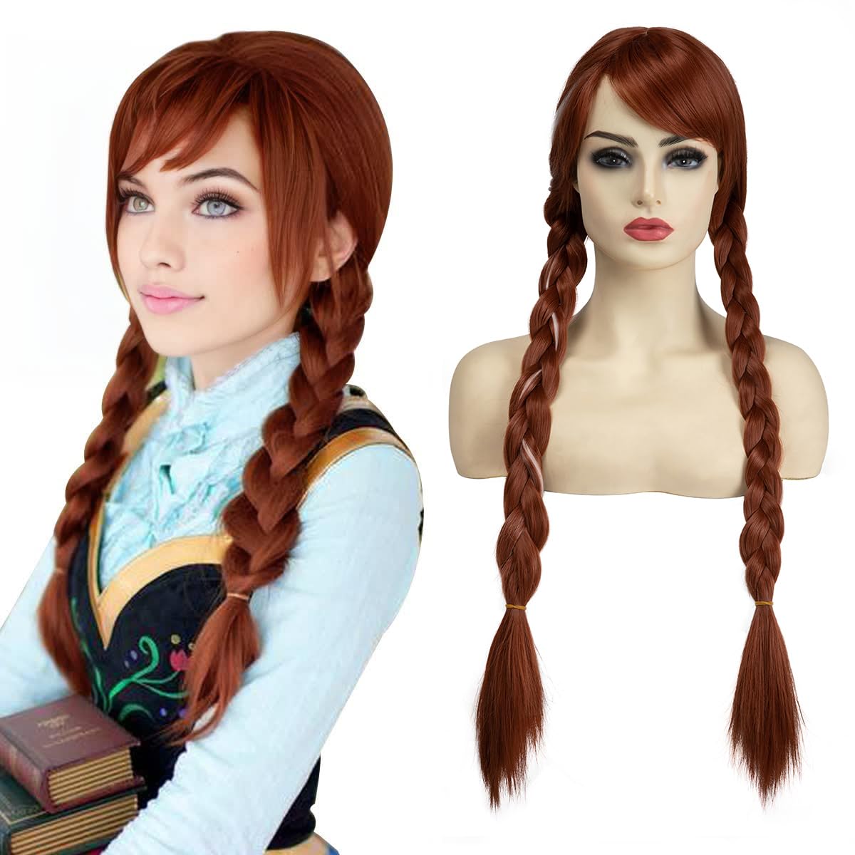 SARLA Women's Long Braided Auburn Wig Straight 30 Inch Synthetic Pigtail Hair for Cosplay Party Halloween Costume Adult Size