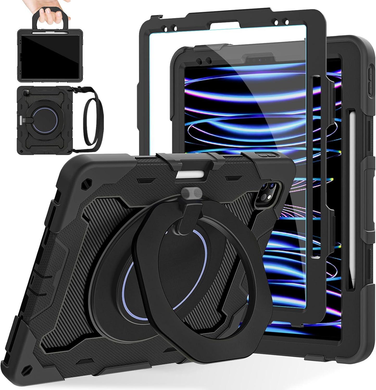 ![ROISKIN for iPad Pro 12.9 -Inch Case (6th, 5th, 4th & 3rd Gen)with HD Screen Protector, 360 Stand, Handle, Pencil Holder,Shoulder Strap[15ft Drop Protection]Rugged Bulky Full Body 12.9 iPad Pro Case - Image 4](https://m.media-amazon.com/images/I/71zncdnAMWL._AC_SL1500_.jpg)
