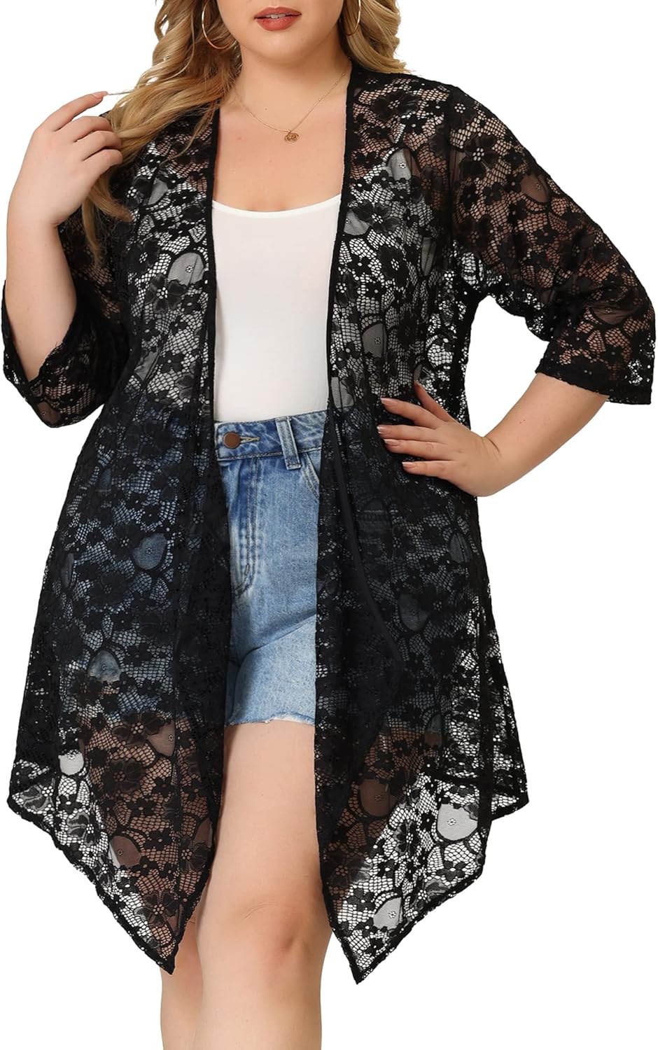 Agnes Orinda Plus Size Cardigans for Women Open Front 3/4 Sleeves Crochet Cover Ups Jackets 2024
