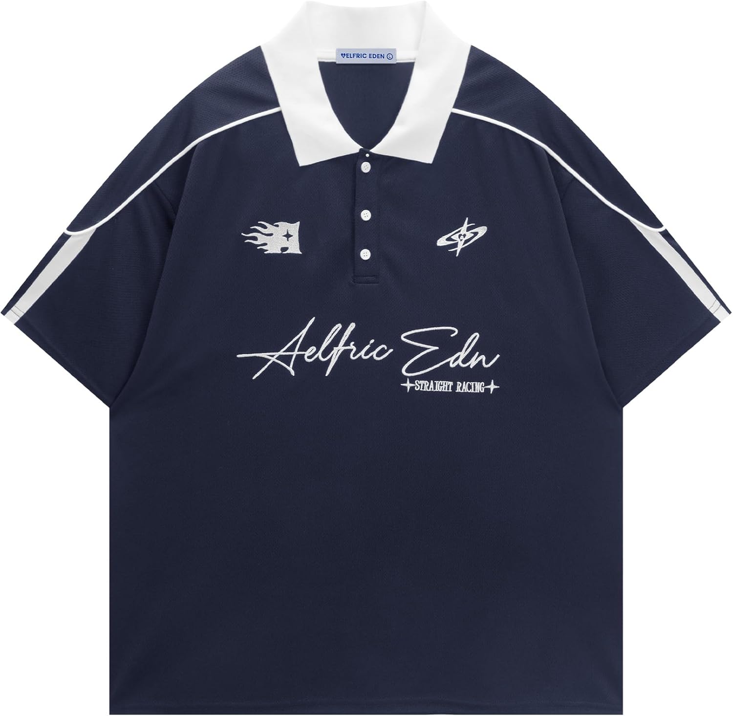 Aelfric Eden Mens Vintage Letter Polo Tee Oversized Button Collar Graphic Patchwork T Shirt Short Sleeve Summer Tops