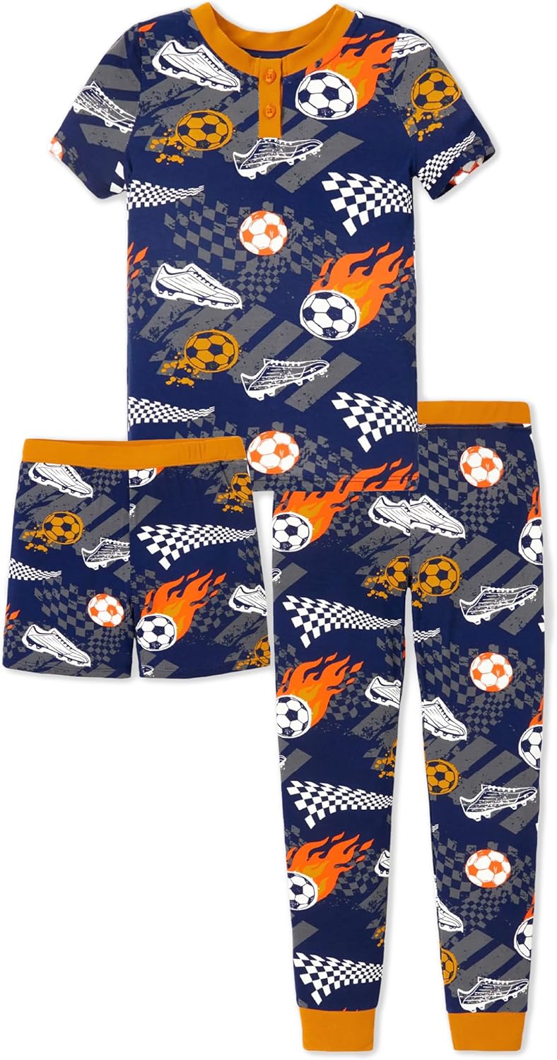PATPAT Bamboo Viscose Pajamas Sets for Boys Girls Kids Toddler, 3 Pack Shorts & Pants Sleepers, Ultra-soft Snug Fit Pjs 2-12Y
