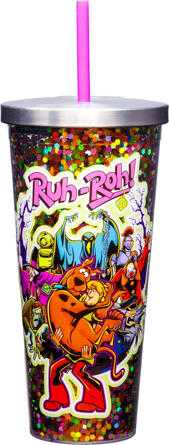 Spoontiques Scooby Doo Halloween Glitter Cup Tumbler with Stainless Steel Lid and Straw - 20 oz - Acrylic - Multicolored