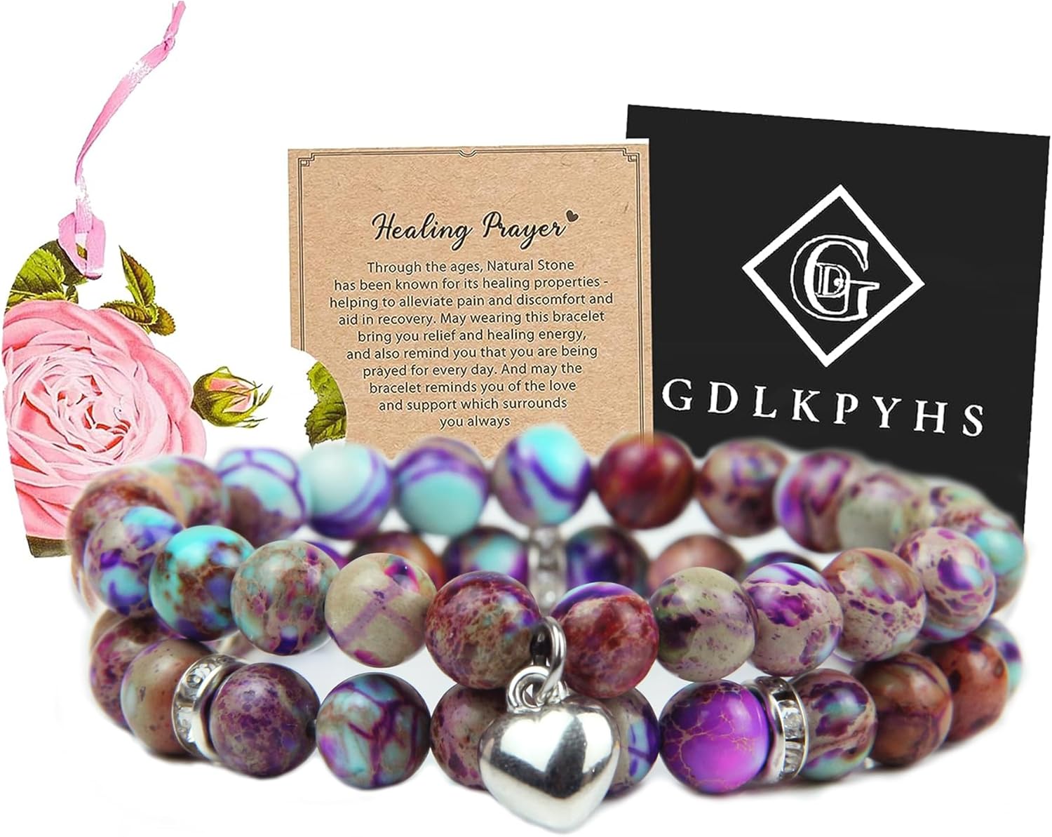 2Pcs Healing Crystal Bracelets for Women Handmade Beaded Bracelet Healing Prayers Crystal 8mm Natural Stone Beads Bracelet Stress Relief Get Well Soon Gifts