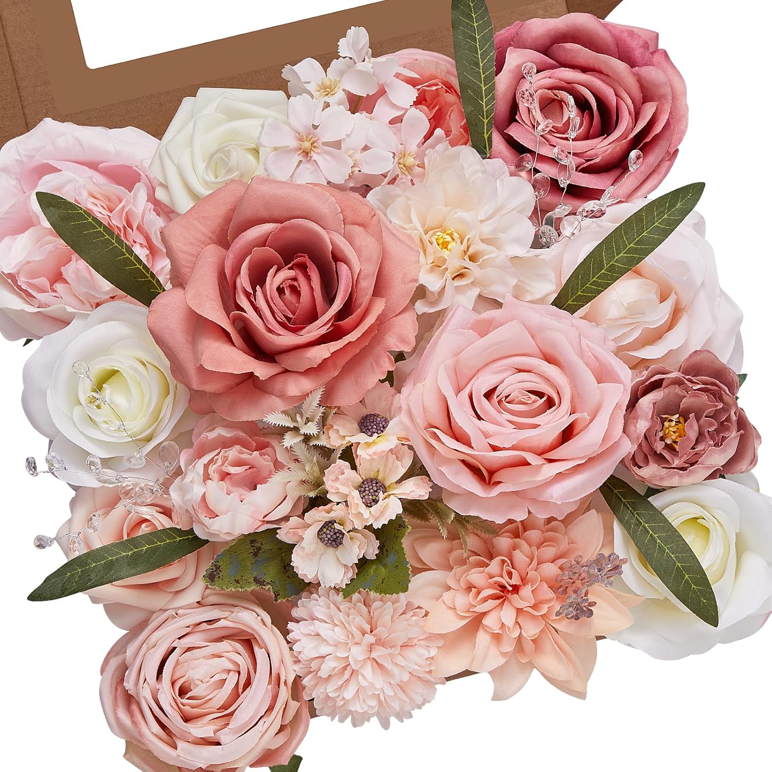 - Artificial Flowers Combo Includes- Blush Austin Rose, Deep Pink Rose, Blush Pink Dahlia, Blush PE Roses, White PE Roses, Champagne Pink Ball Chrysanthemum, Champagne Silk Rose, White Silk Rose, Pink Silk Peony, Pink Chinese Peony, Light Pink Peony Bud, Blush Milan Chrysanthemum, Old Pink Peony, Pink Daisy, Old Pink Silk Rose, Light Bean Pink Silk Rose, Bean Pink Silk Rose, Olive Leaves, Acrylic Water Drop Decoration