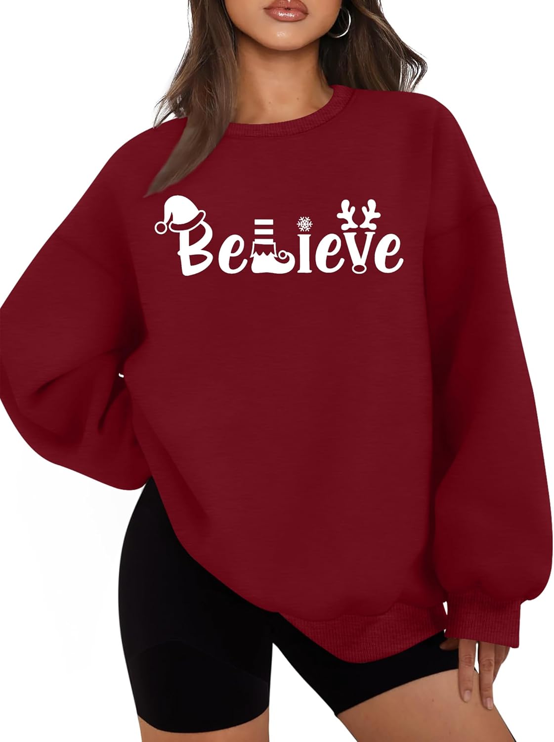 LHBNK Believe Christmas Shirt Womens Believe Plaid Print Tree T-Shirt Xmas Long Sleeve Sweatshirt Holiday Shirts Tops
