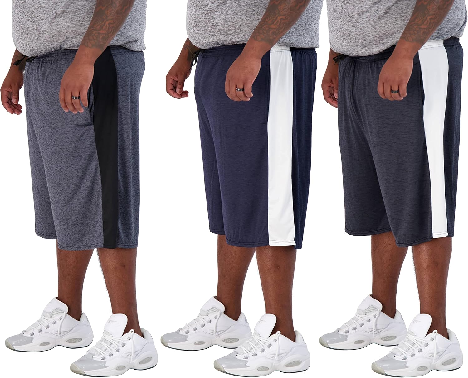 Real Essentials Men's Big & Tall 3-Pack Dry Fit & Mesh Active Athletic Perfomance Shorts (3X-5X)