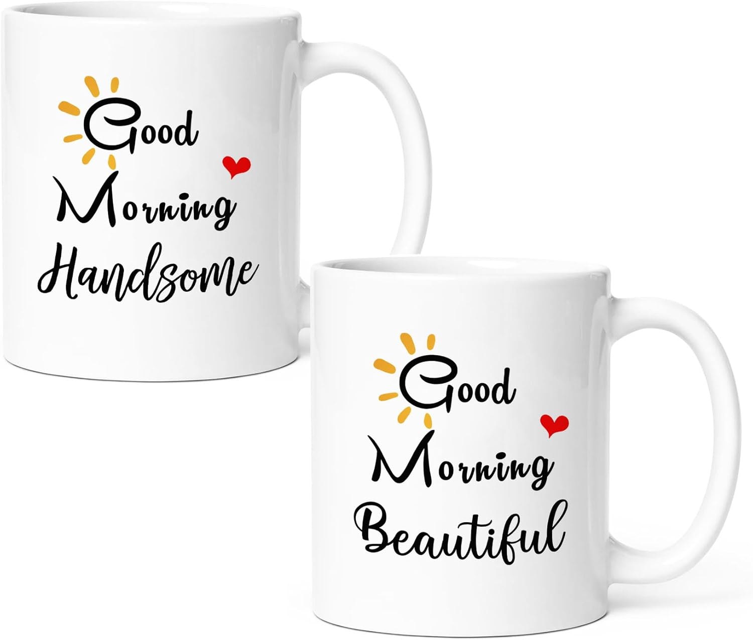 - Novelty Design: Artwork "good morning beautiful and Handsome " is printed on both sides. The HD color ink is long lasting and lead-free.