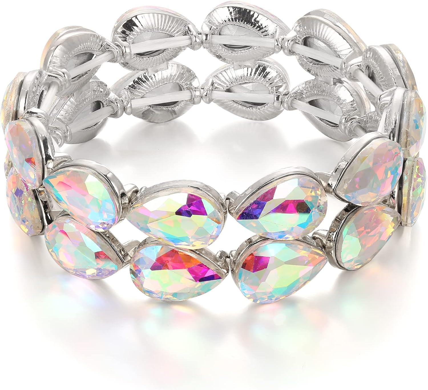 BriLove Wedding Bridal Elegant Crystal Double Row Teardrop Cluster Stretch Bangle Bracelet for Bride