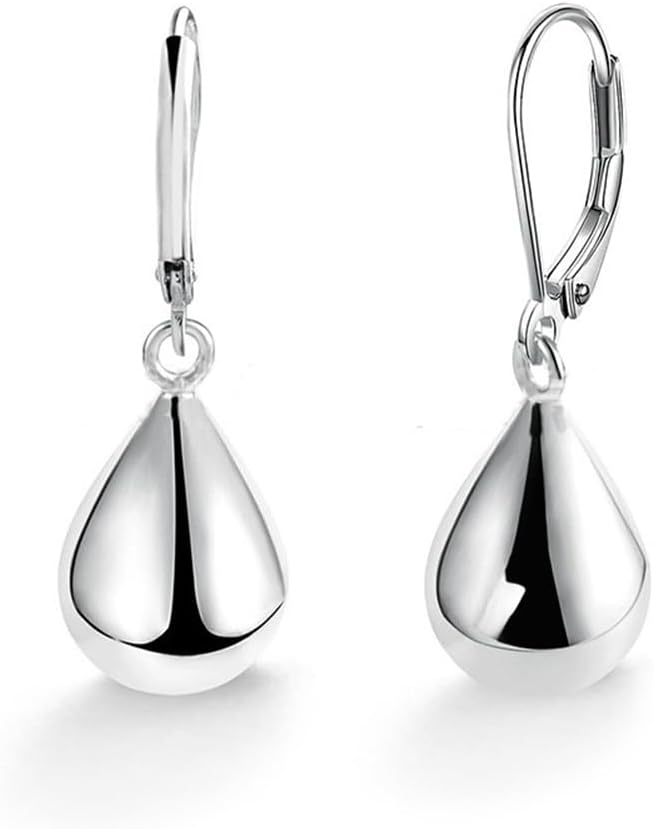 925 Sterling Silver Teardrop Leverback Dangle Earrings for Women Waterdrop Tear Drop Dangle Earrings Fashion Hypoallergenic Jewelry Gifts (Silver)