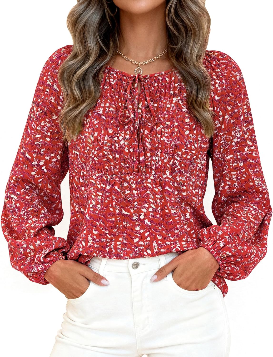 KIRUNDO Boho Tops for Women Going Out Floral Long Sleeve Shirts Dressy Casual Work Blouses Drawstring 2025 Fall Outfits