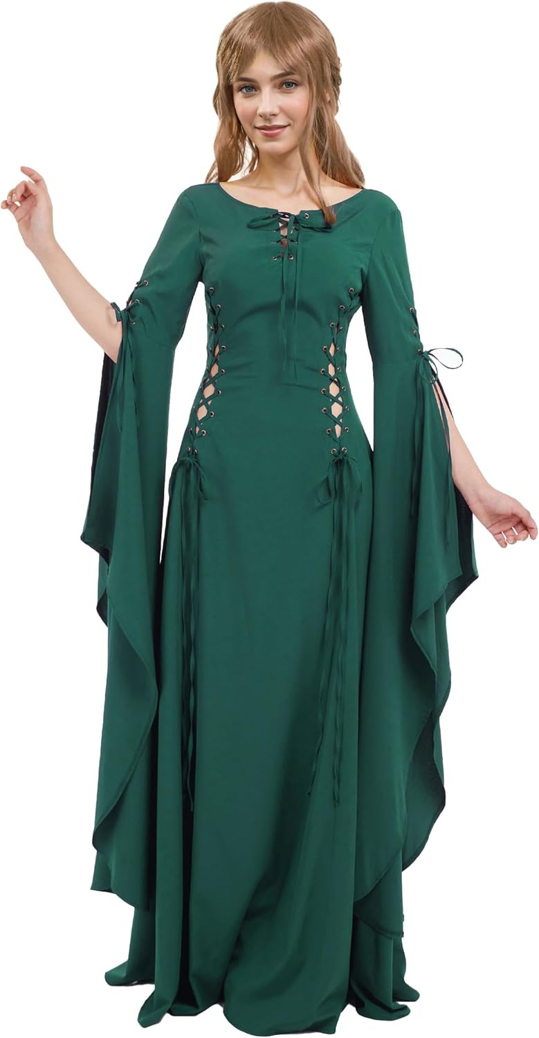 Renaissance Dress Medieval Costume Women Exclusive Medieval Wedding Dress with Long Trailing Sleeves