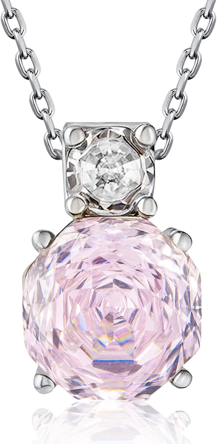 Birthstone Pendant Necklace for Women - 18K White Gold Plated Created Diamond Jewelry - Rose Cut Octagonal CZ Mens Gifts