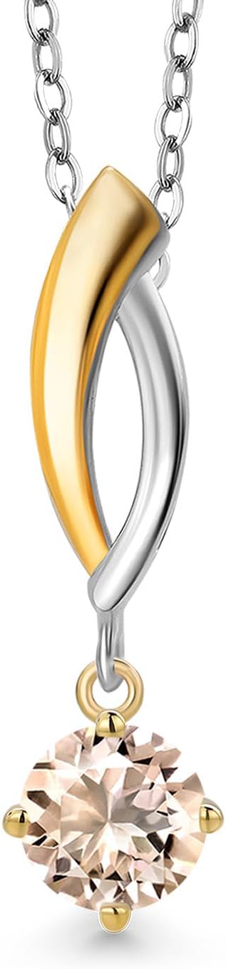 Gem Stone King 925 Silver and 10K Yellow Gold Peach Morganite Pendant Necklace for Women | 0.40 Cttw | Gemstone October Birthstone | Round 5MM | With 18 Inch Silver Chain