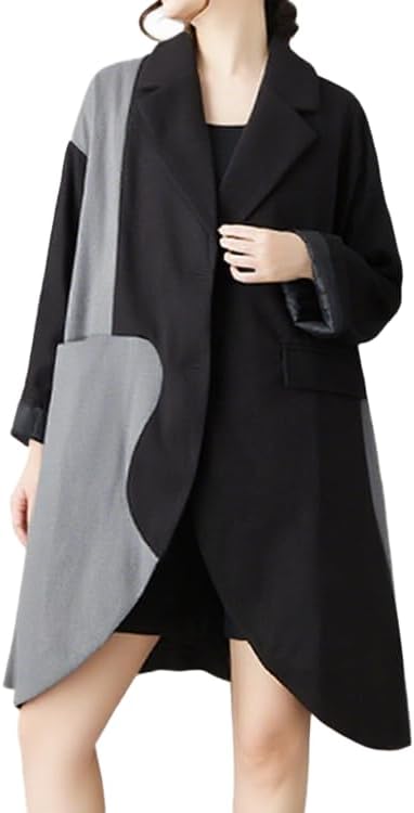ellazhu Women's Coats Classic Oversized Jacket Lapel Button Down Irregualr Hem Long Sleeve GZ615