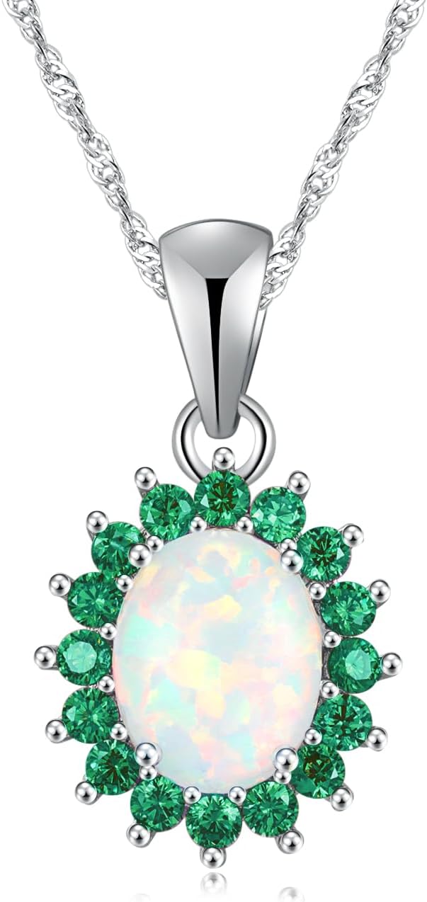 CiNily 14K White Gold Plated Opal Pendant Necklace-Flower/Oval Shap Necklace Gemstone Women Girls Jewelry Gift