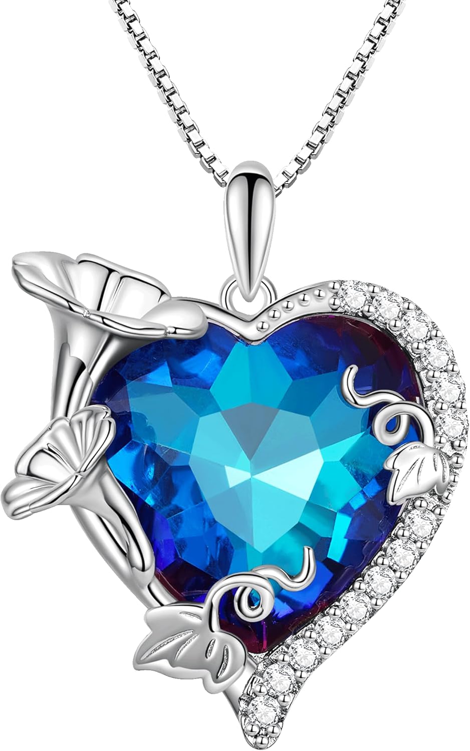 Birthstone Necklace for Women, 925 Sterling Silver Mother Necklaces with Infinity Love Heart Crystal Pendant, Anniversary Birthday Christmas Jewelry Gifts for Mom from Daughter
