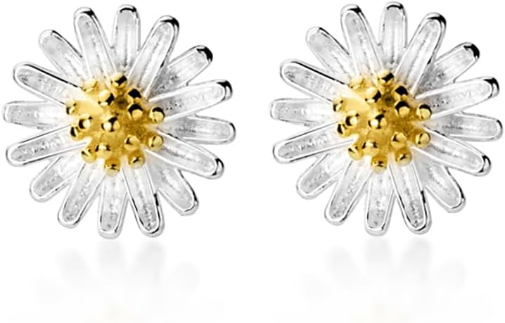 Reffeer Solid 925 Sterling Silver Daisy Flower Stud Earrings for Women Teen Girls Small Daisy Stud Earrings Spring