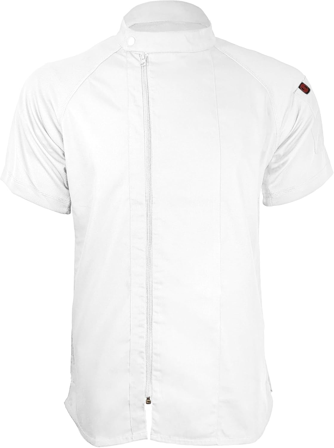 ChefsCloset Jamison Men's Short Sleeve Chef Coat – Modern Mens Chef Jacket for with Offset Zipper and Mesh Panels