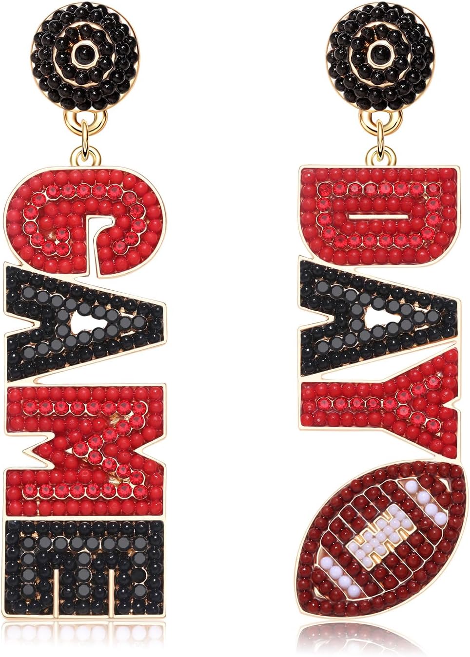Beaded Game Day Earrings - Rhinestone Football Team Drop Dangle Earrings for Women - Football Mom Accessories & Sports Jewelry Gifts