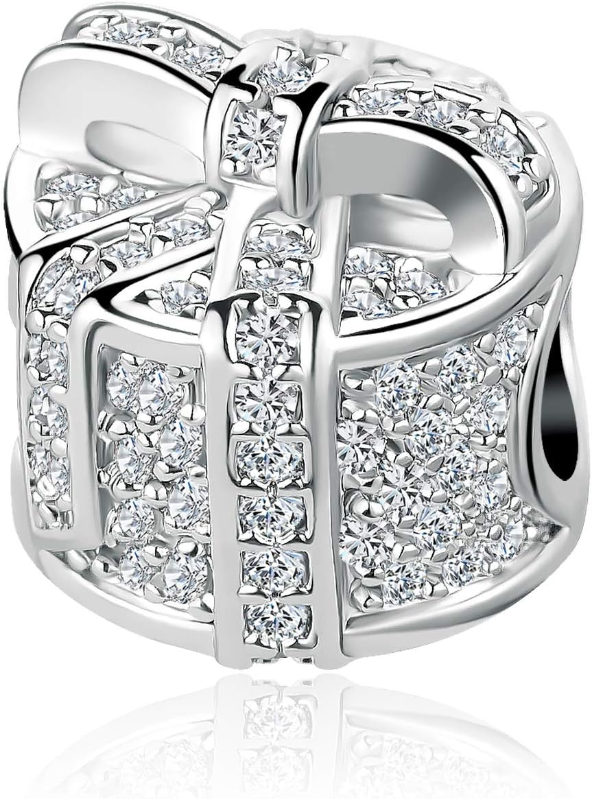 Sparkling Gift Box Charms for Pandora Bracelet for Women Cubic Zirconia Gift Charm for Bracelet Necklace Pendant for Women Jewelry