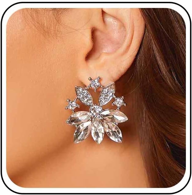 Vintage Crystal Flower Earrings CZ Rhinestone Drop Earrings Cluster Crystal Stud Earrings Silver Rhinestone Wedding Earrings Jewelry for Women