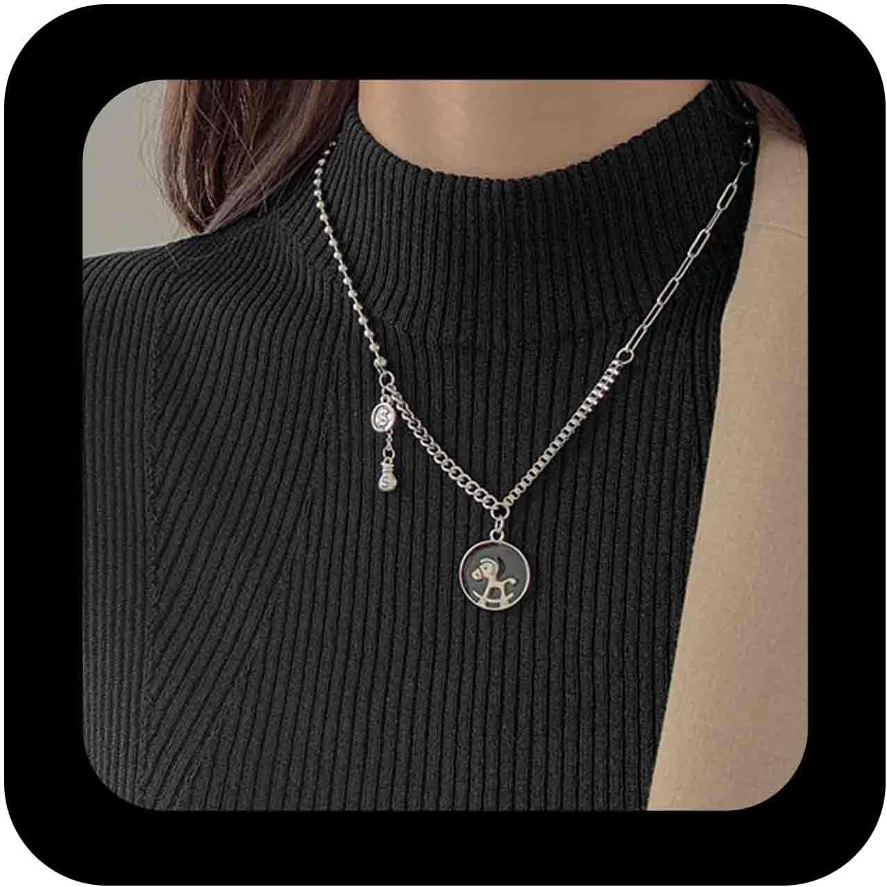 Minimalist Silver Pendant Necklace Round Coin Necklaces Tiny Paperclip Chain Necklace Clothing Accessories Jewelry for Women