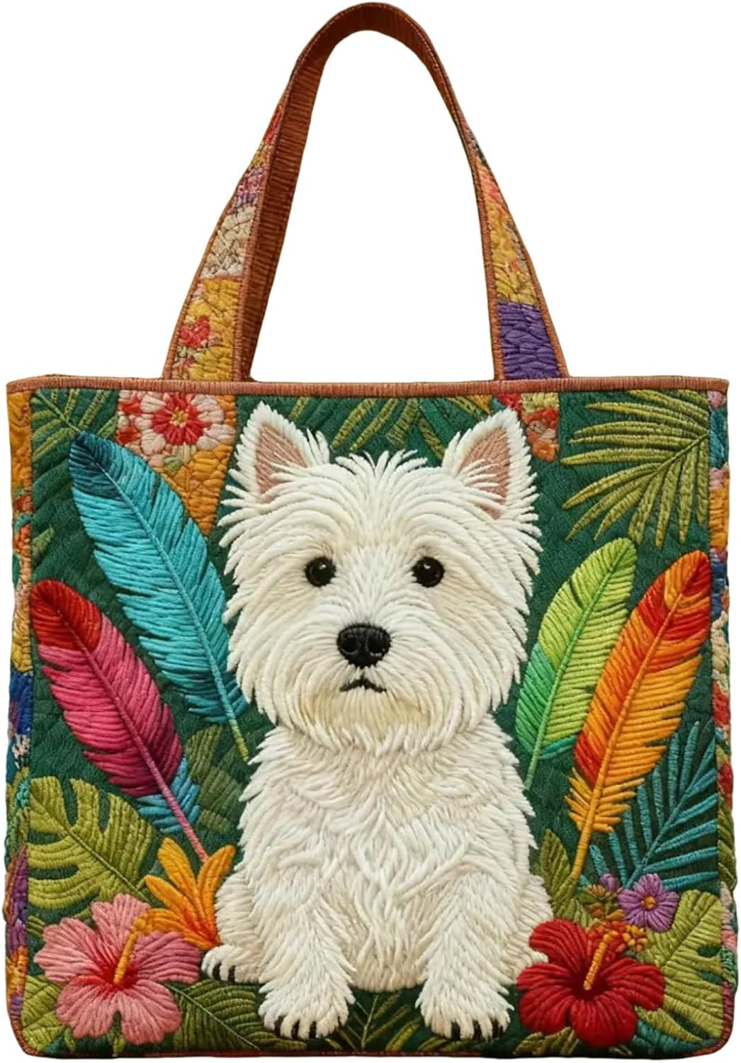 Cat Quilted Tote Bag for Women Vintage Floral Quilted Print Travel Bag Purse Animal Shoulder Totes for Shopping Grocery