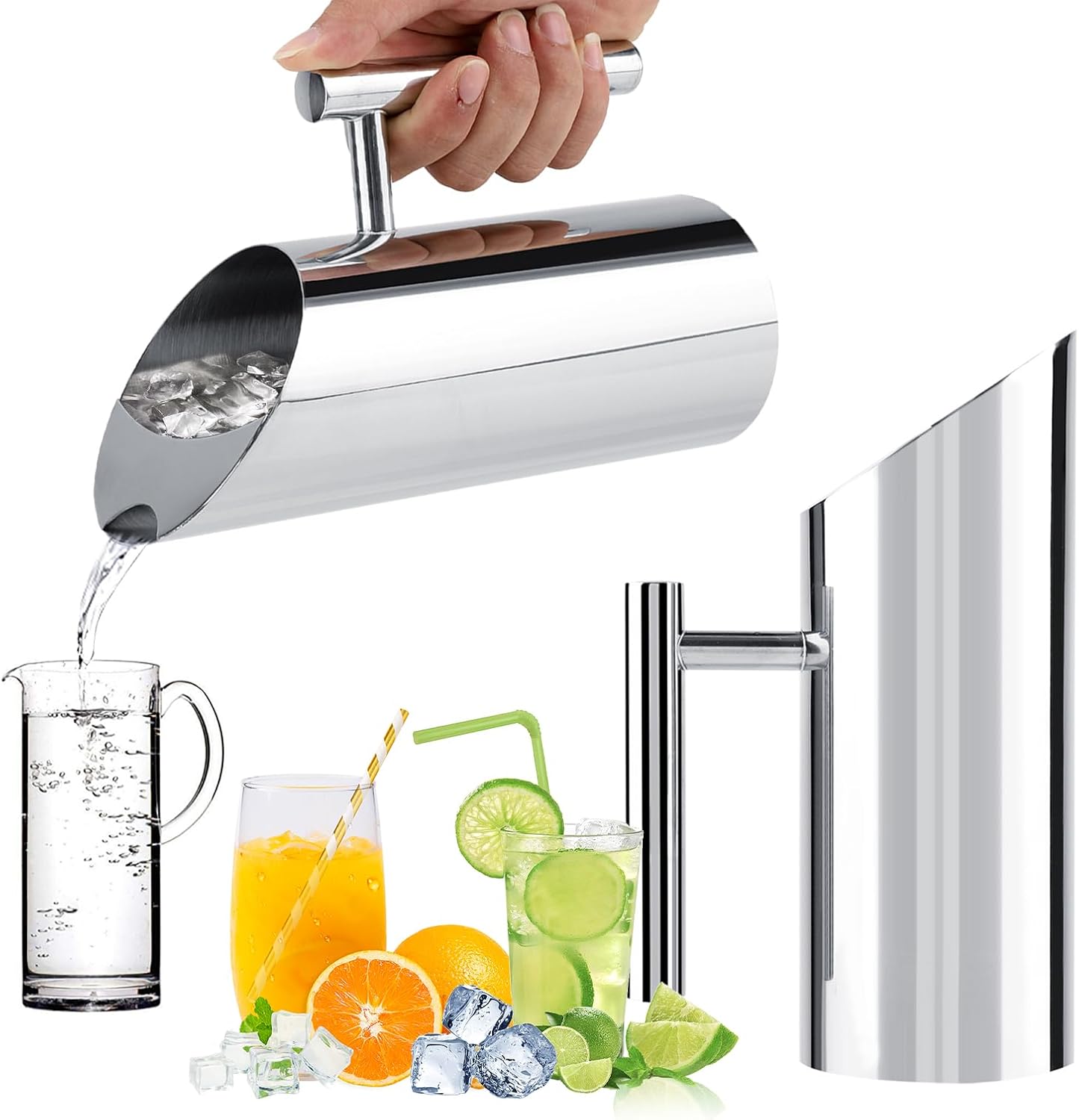 - 【Straight Body & Handle】- The modern pitcher is designed with a sturdy handle, making it easy to pour and carry even when it's full. The ergonomic design ensures a comfortable grip, allowing you to serve beverages effortlessly. Its straight body design also allows for easy cleaning and filling.