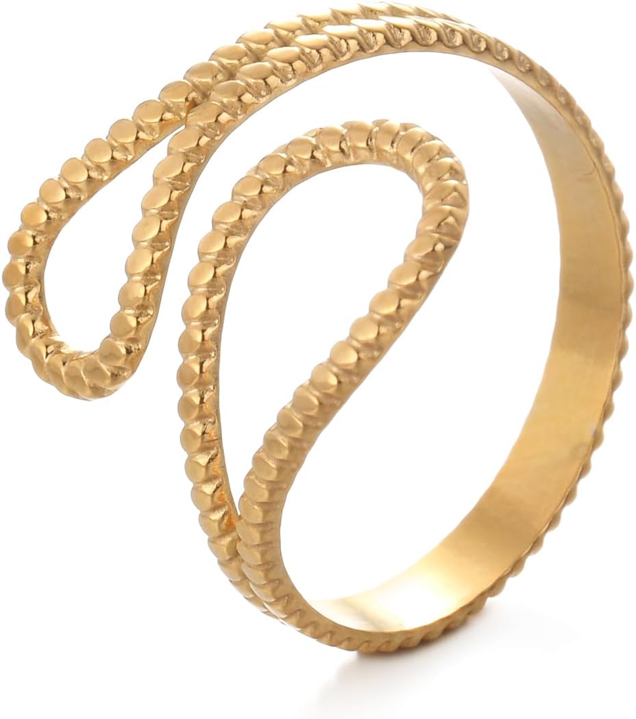 Chunky Gold Dome Open Rings for Women, Statement Vintage 14k Gold Plated Adjustable Twisted Round Warp Finger Rings Fashion Prom Jewelry Gift