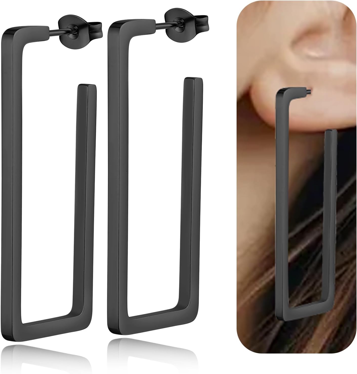 FLYUN Gold Silver Black Rainbow Large Square Hoop Dangle Trendy Earrings For Women-Hypoallergenic Stainless Steel Dangling Earrings For Sensitive Ears Women-Fashion Accessories Jewerlry Gift