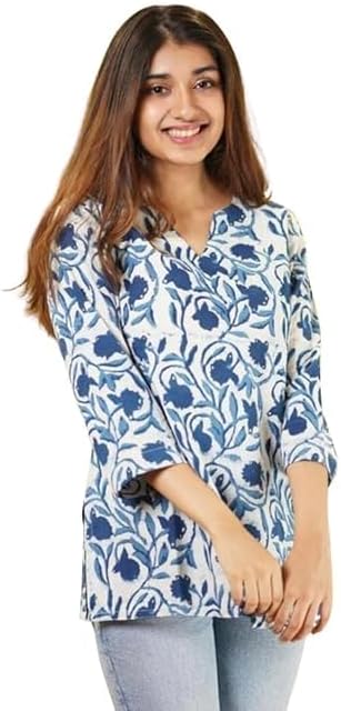 PIDAVLIYA'S Indian Women's Tunics Tops Cotton Floral Printed Short Kurti Kurta Shirt Top for Women