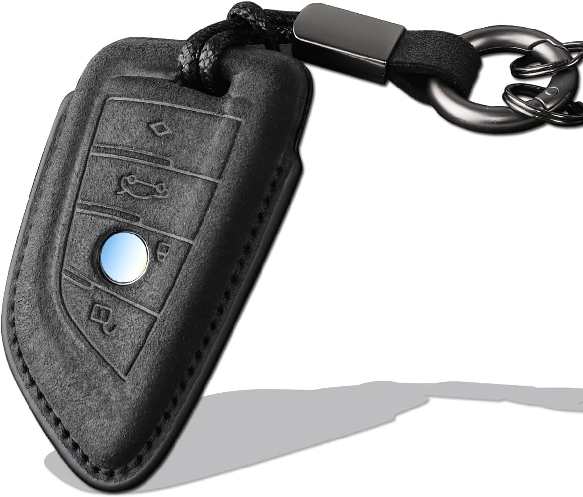 for BMW Key Fob Cover with Keychain Fit for BMW 3 5 6 7 X1 X2 X3 X5 X6 Series Smart Keys Case Protector suede (Black, Style A)